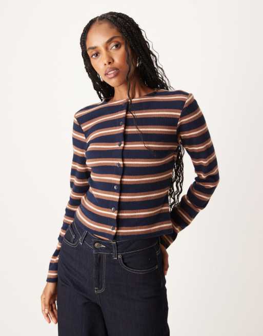 Top azul marino a rayas abotonado con acabado cepillado de ASOS DESIGN