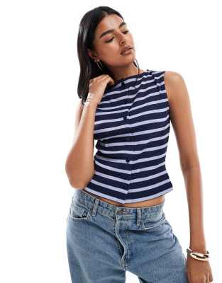 Top azul marino a rayas sin mangas con botones de ASOS DESIGN