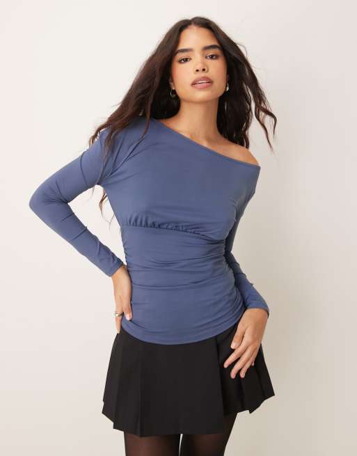 Top azul marino asimétrico suelto de ASOS DESIGN