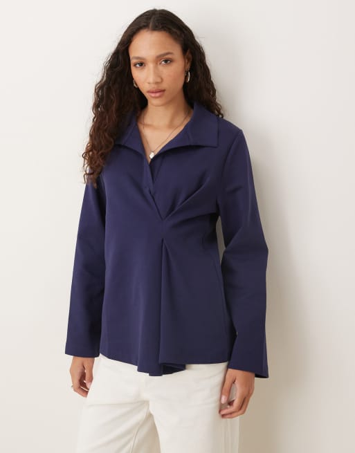Top azul marino estilo polo de rugby con detalle recogido de tejido grueso de ASOS DESIGN