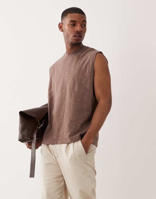Top beis extragrande sin mangas de tejido grueso texturizado de ASOS DESIGN
