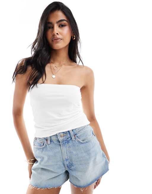 Top blanco ceñido con escote palabra de honor y diseño de dos capas de ASOS DESIGN