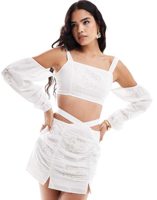 Top blanco con patrón calado y aberturas de ASOS DESIGN (parte de un conjunto)