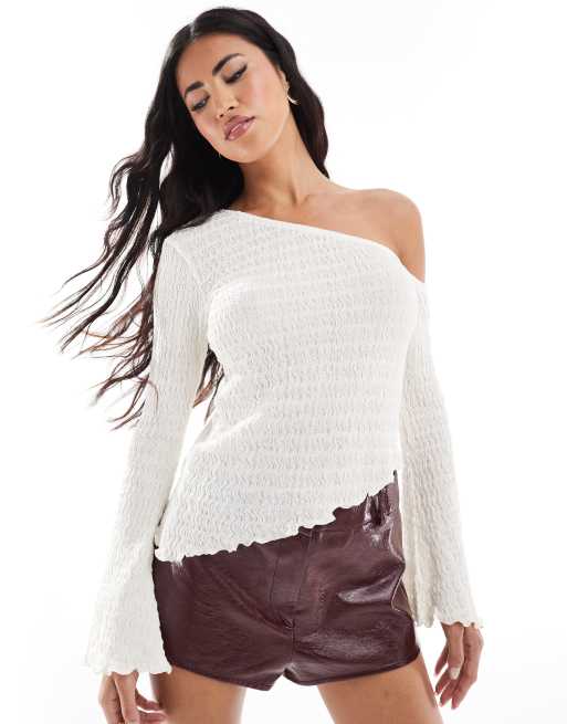 Top blanco marfil asimétrico texturizado de ASOS DESIGN