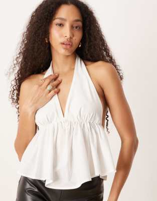 Top blanco marfil de estilo babydoll con cuello halter de mezcla de popelina de ASOS DESIGN