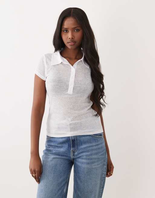 Top blanco transparente de manga larga con solapas de ASOS DESIGN