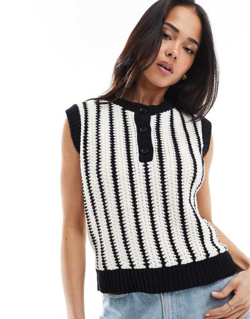 Top blanco y negro a rayas abotonado de tejido efecto croché de ASOS DESIGN