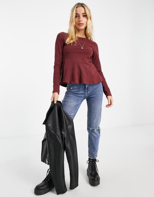 Top burdeos de manga larga con sobrefalda de ASOS DESIGN