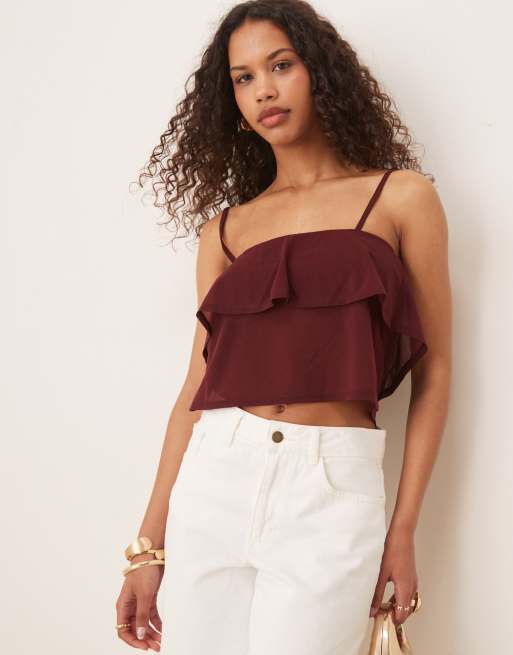 Top burdeos de tirantes con vuelo de malla de ASOS DESIGN