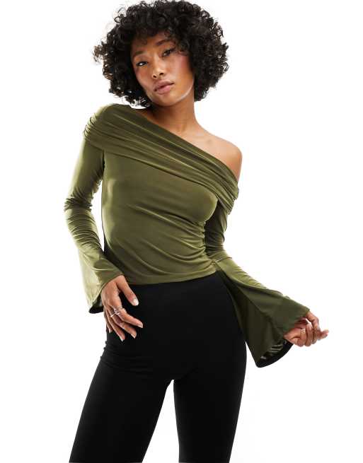 Top caqui asimétrico ceñido de ASOS DESIGN
