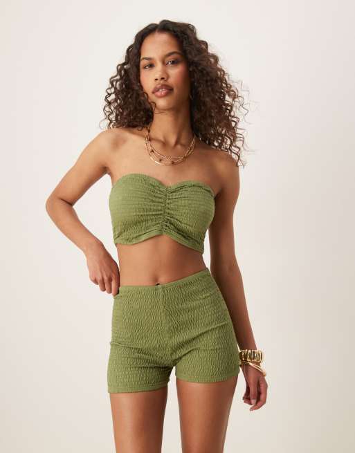 Top caqui fruncido con escote palabra de honor de ASOS DESIGN (parte de un conjunto)