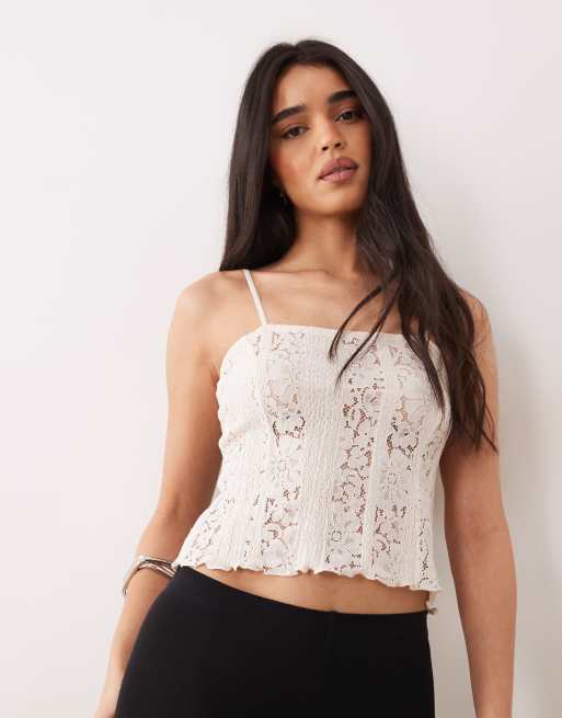 Top color crema de tirantes de encaje de ASOS DESIGN