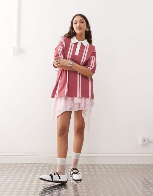 Top color frambuesa a rayas extragrande de estilo rugby de ASOS DESIGN