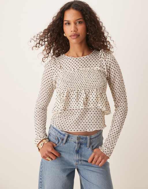 Top combinado de manga larga y tirantes con estampado de lunares de ASOS DESIGN
