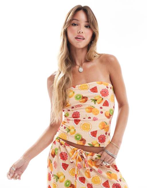 Top con escote palabra de honor y estampado de naranjas de tejido texturizado de ASOS DESIGN (parte de un conjunto)