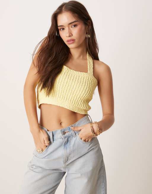 Top corto amarillo con cuello halter de punto de hilo flameado de ASOS DESIGN