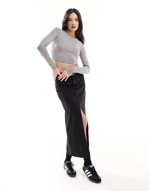 Top corto gris entallado de manga larga de ASOS DESIGN