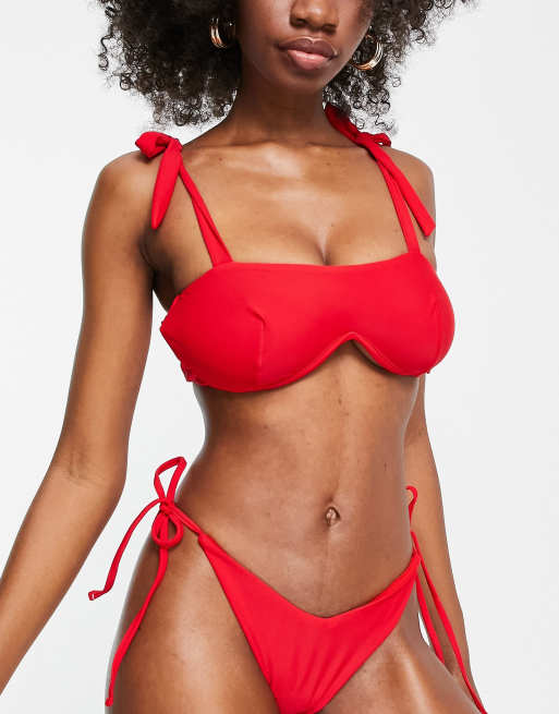 Top de bikini rojo de copas grandes con aros en forma de "U", tirantes dobles y escote cuadrado exclusivo de ASOS DESIGN
