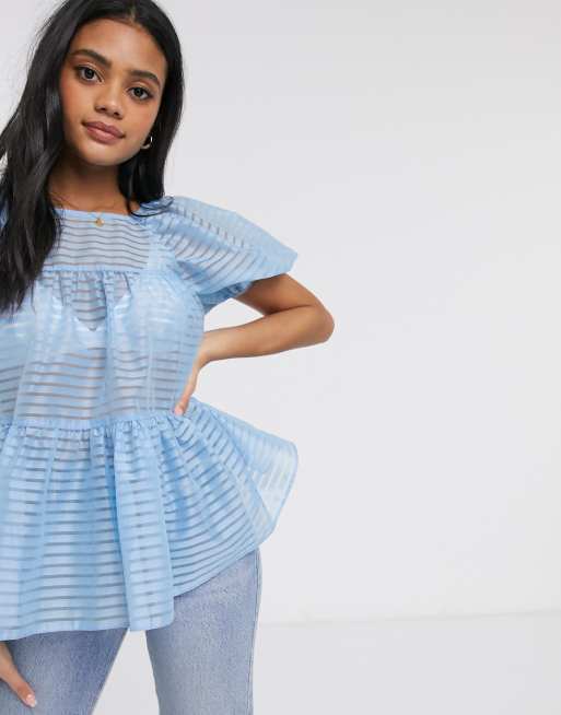 Top de corte trapecio de organza con diseño de rayas de ASOS DESIGN