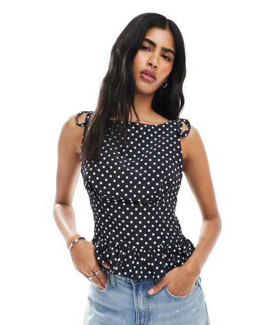 Top de tirantes con estampado de lunares, cintura entallada y lazadas en los hombros de ASOS DESIGN