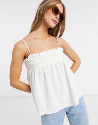 Top de verano blanco de tirantes con acabado abullonado de ASOS DESIGN