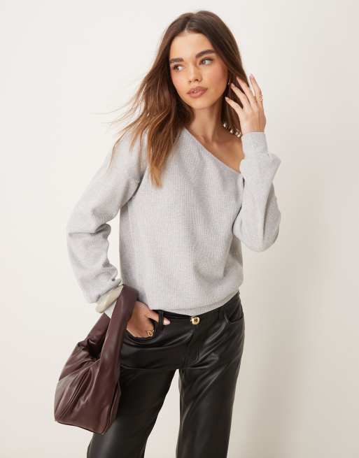 Top gris asimétrico de manga larga de tejido gofrado de ASOS DESIGN