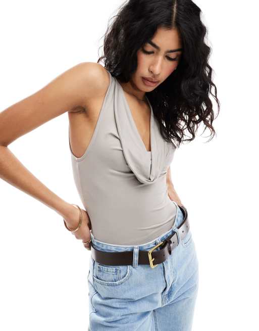 Top gris ceñido sin mangas con cuello desbocado de ASOS DESIGN