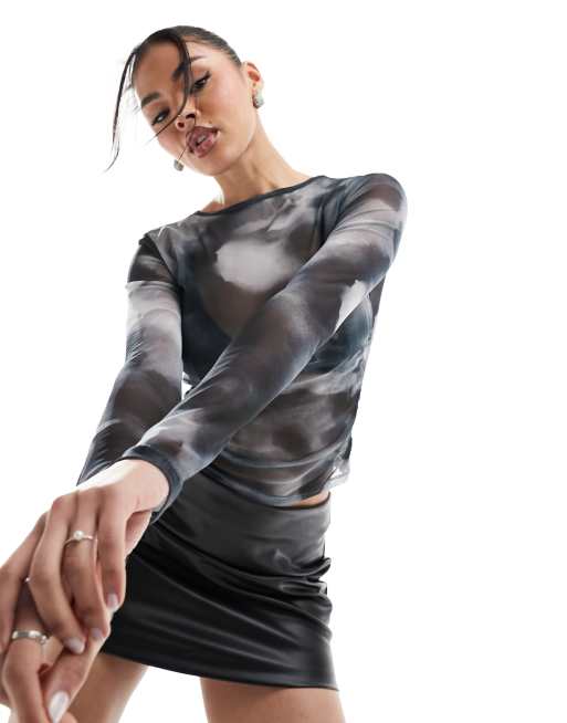 Top interior con estampado difuminado de malla de ASOS DESIGN