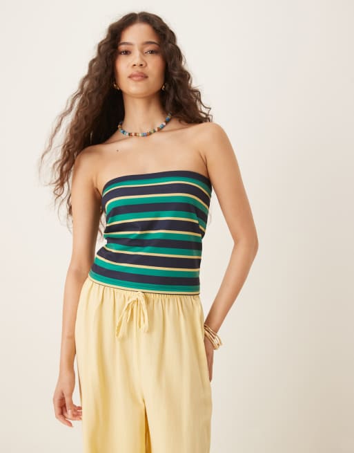 Top largo verde a rayas con escote palabra de honor de ASOS DESIGN