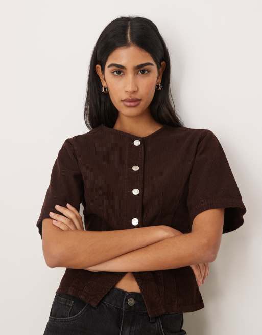 Top marrón chocolate con cintura ceñida de pana de ASOS DESIGN