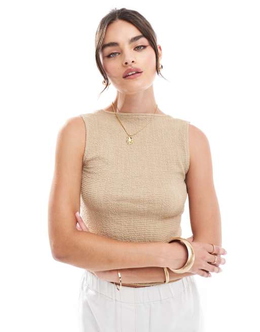 Top marrón con cuello barco y detalle en la espalda de tejido texturizado de ASOS DESIGN