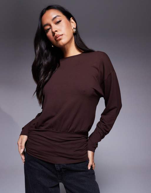 Top marrón con mangas murciélago y cintura entallada de ASOS DESIGN