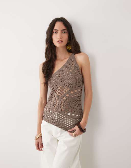 Top marrón moca asimétrico de punto de croché de ASOS DESIGN