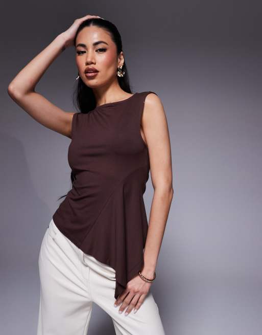 Top marrón sin mangas con detalle de godets de ASOS DESIGN