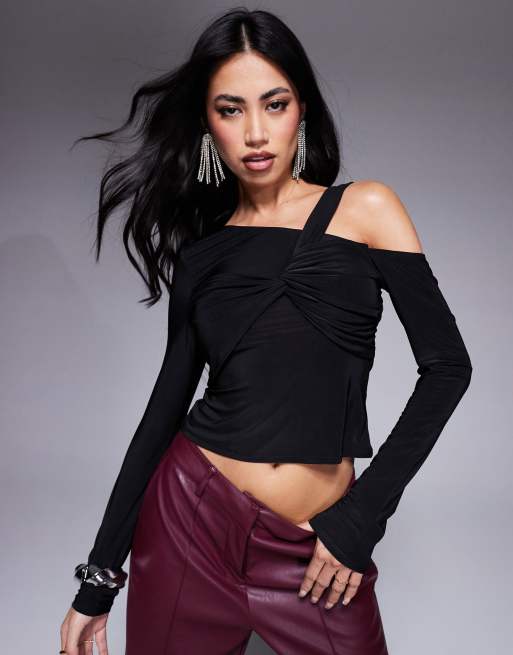 Top negro ceñido y asimétrico con detalle retorcido en el pecho de ASOS DESIGN