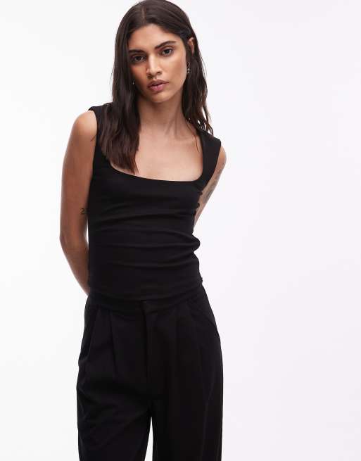 Top negro con cuello redondo de punto roma de ASOS DESIGN (parte de un conjunto)