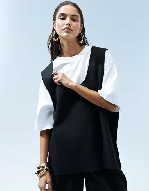Top negro con diseño de capa superior con cuello ancho de tejido efecto neopreno de ASOS DESIGN