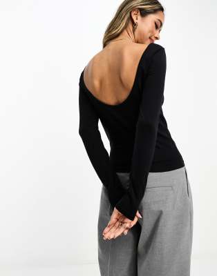 Top negro de manga larga con espalda escotada de ASOS DESIGN