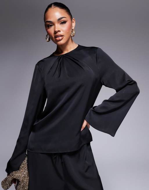 Top negro de manga larga de satén de ASOS DESIGN (parte de un conjunto)