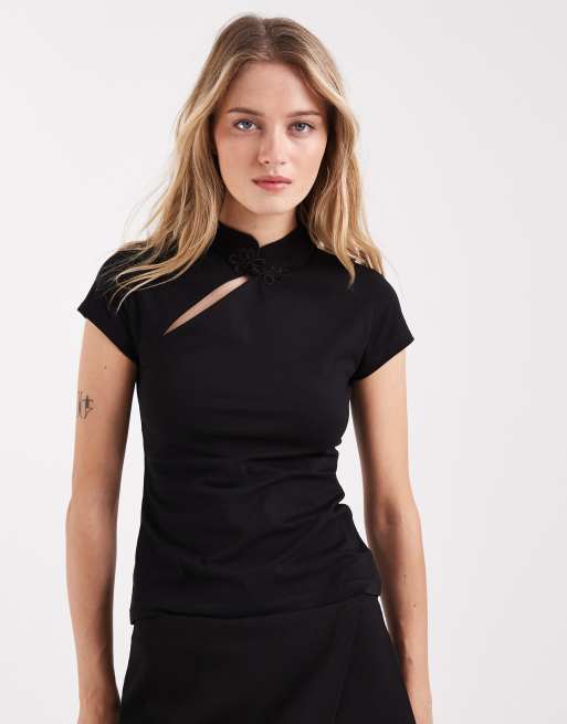 Top negro entallado con cuello alzado de ASOS DESIGN