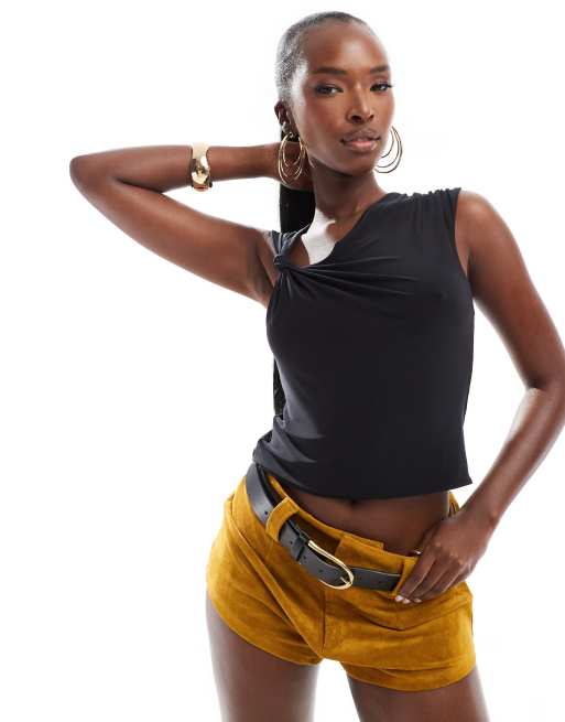Top negro sin mangas ceñido con detalle anudado en el hombro de ASOS DESIGN