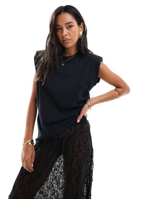 Top negro sin mangas con hombreras de ASOS DESIGN