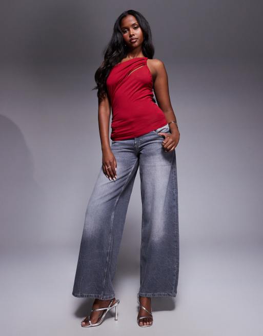 Top rojo asimétrico de tirantes drapeado con abertura de ASOS DESIGN
