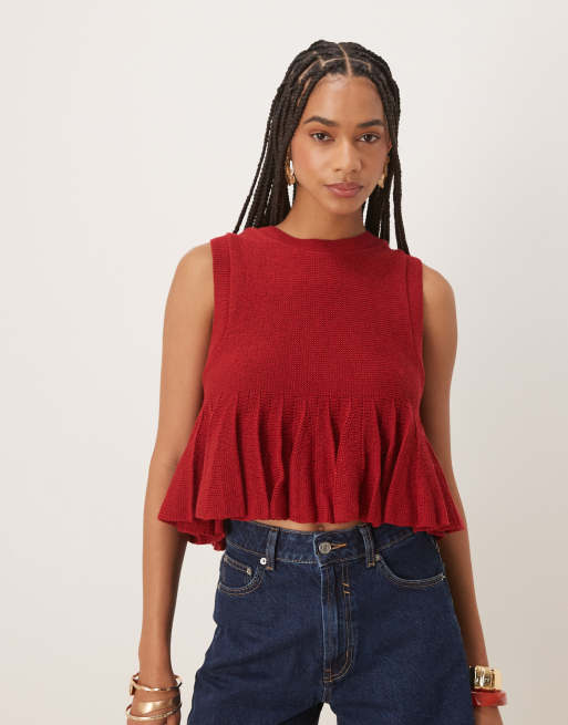 Top rojo sin mangas con sobrefalda de volantes en el bajo de punto de ASOS DESIGN
