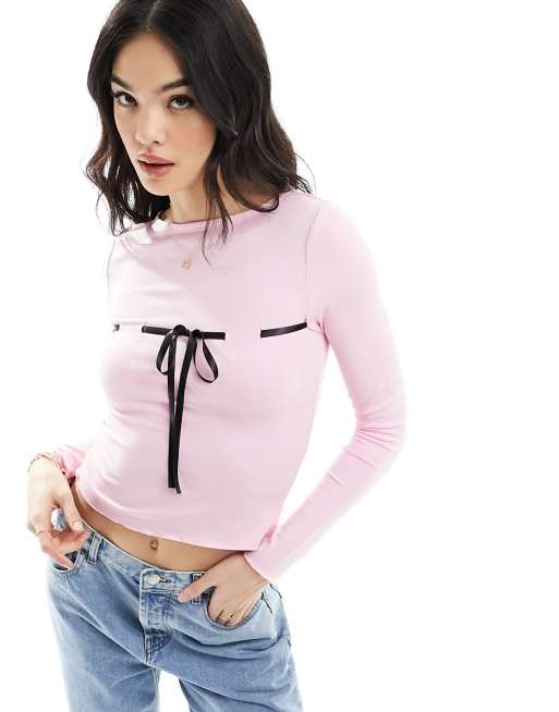 Top rosa con cuello barco y detalle de lazo de ASOS DESIGN