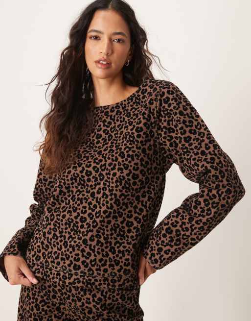 Top vaquero de manga larga con estampado de leopardo oscuro flocado de ASOS DESIGN