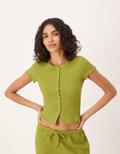 Top verde de manga corta con botones de croché de ASOS DESIGN (parte de un conjunto)