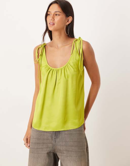 Top verde de tirantes anudados en los hombros de satén de ASOS DESIGN