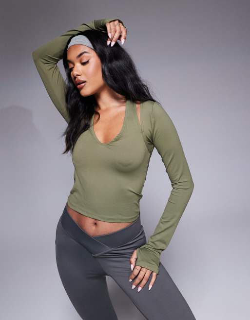 Top verde oliva con cuello halter combinado de poliamida de ASOS DESIGN