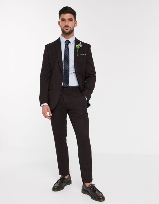 Traje ajustado de efecto lana en color burdeos de ASOS DESIGN wedding